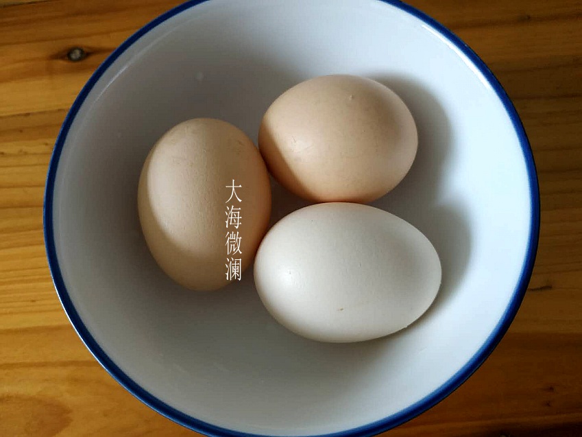 做法:1、准备食材,挑选大个的鸡蛋3个备用;