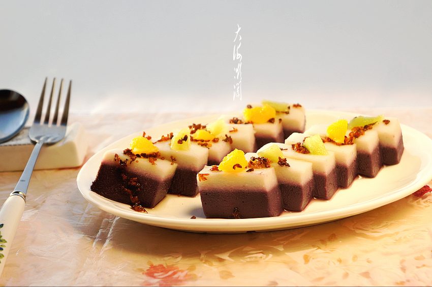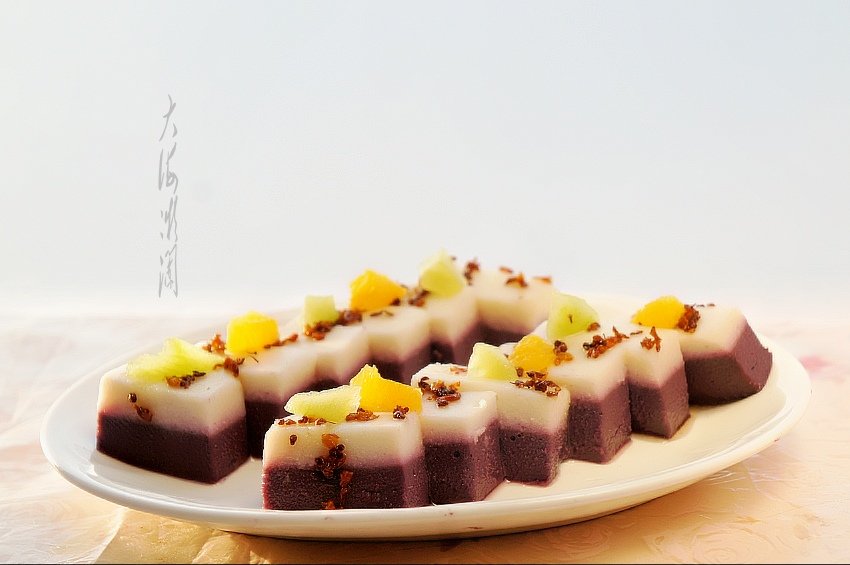 这几中食材是我们生活中常见又常吃的家常菜,可谓是最物美价廉的保健品,专家说,冬天要吃那些生长在地下的果实,因为它们接收了一个夏天的阳光,所谓秋收冬藏。地下果实最先想到的当然是薯类,紫薯、山药和马铃薯。因为薯类脂肪含量少,热量远低于主食,还富含膳食纤维,有利于肠道蠕动。对于薯类我最喜欢紫薯和山药,色彩诱人,营养丰富。今天大海带来的是一道很接地气的美味,山药紫薯桂花糕,记得第一次吃这糕还是几年前,和朋友在一个比较高档的餐厅聚餐,这道山药紫薯桂花糕一端上桌便吸引了所有的眼球,洁白淡雅,软糯香甜,充满桂花香味,好吃到爆,几个人一致赞美,好看好吃还有营养,饱眼福还包口福,好长时间大家都在回味,禁不住诱惑,最后还是自己动手学做了这道菜,可以想象端上桌也是瞬间被秒光,全家人抢着吃,做少了还真不够吃。常吃紫薯和山药能促进胃肠蠕动,有利于减肥瘦身,美容养颜,还有防癌抗癌,增强免疫力的功效。
