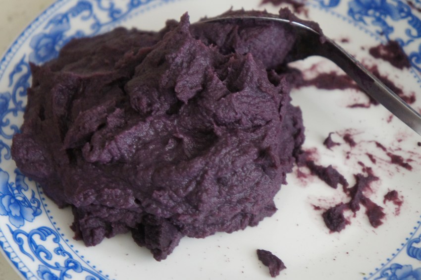 做法:1、紫薯和山药洗净上屉蒸熟,降温后在紫薯温热时装在食品袋内,用擀面杖擀碎成泥,过筛后拌入红糖;