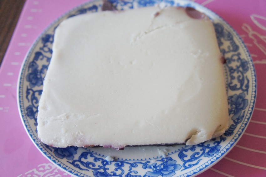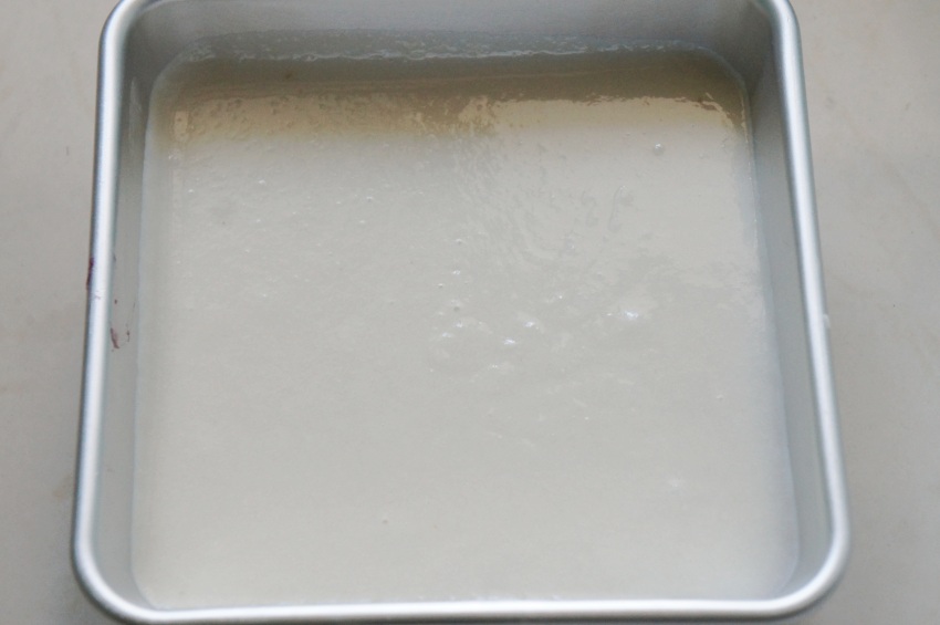 6、将紫薯泥倒入模具中晾凉至基本凝固;