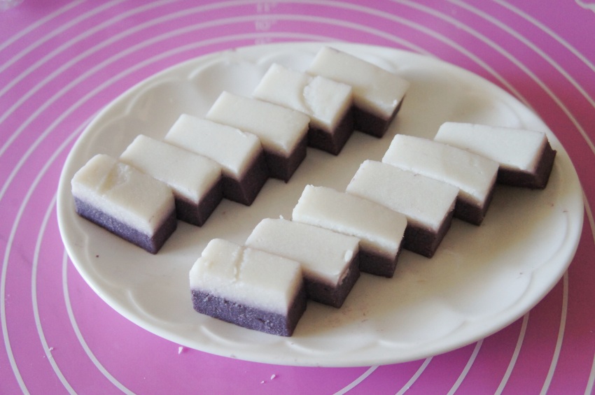 11、根据自己喜欢的大小切成长方体块,码入盘中;
