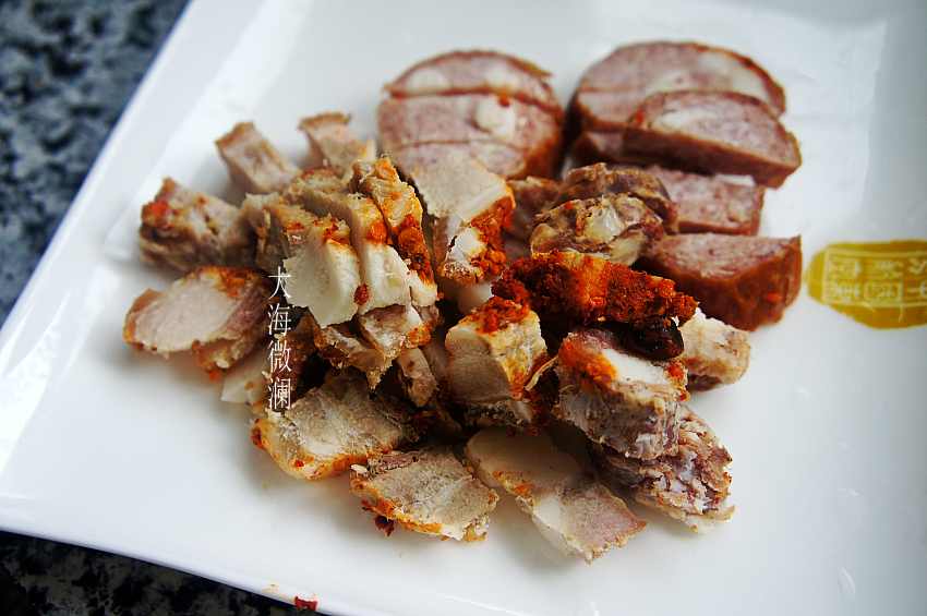 【红苋菜炒肉】所需食材:红苋菜1捆;烤箱猪肉适量;红肠适量;红椒少许;油适量;盐适量;五香粉适量;葱适量;生抽适量;糖适量。
