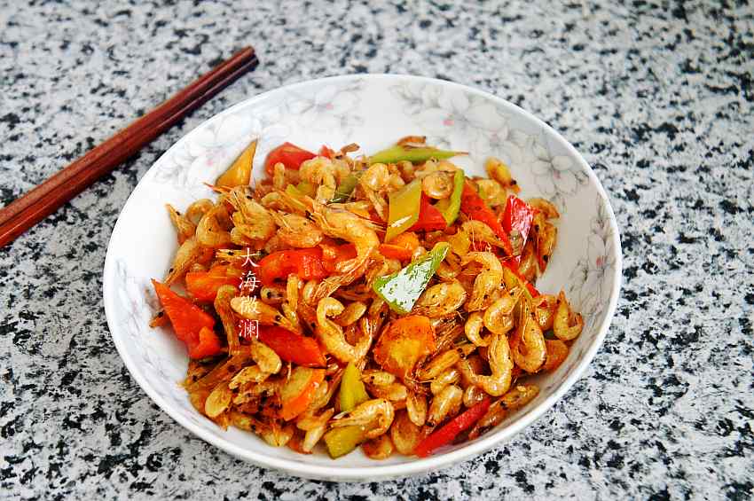 做法:1、买了一斤小河虾,油炸一盘,这是准备用来炒青椒的一部分;
