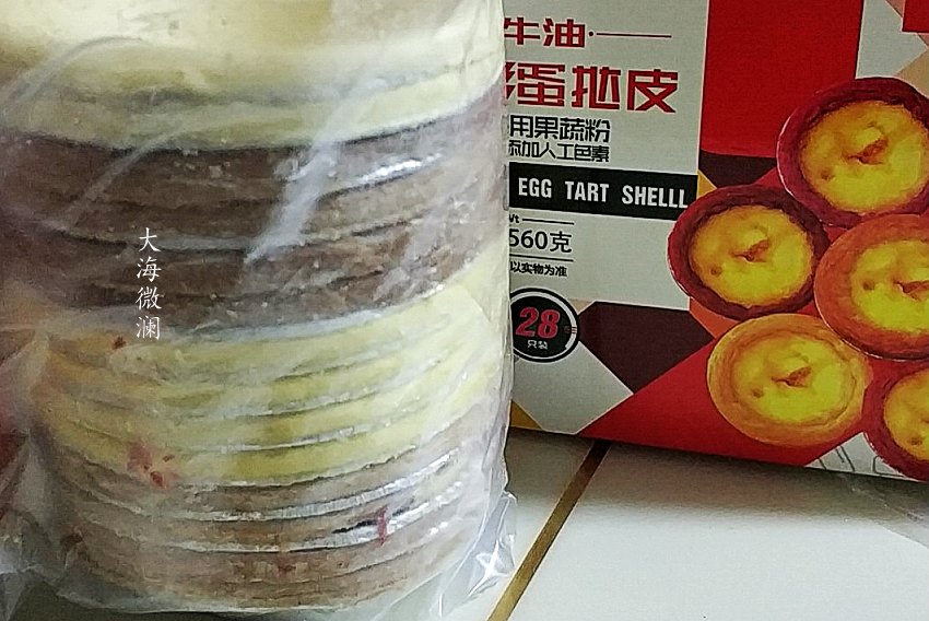 做法:1、网购现成的彩色蛋挞皮,小朋友最喜欢的颜色;
