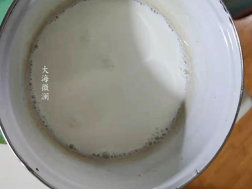 2、牛奶小火加热放入糖和炼乳,融化就行,不要烧开;