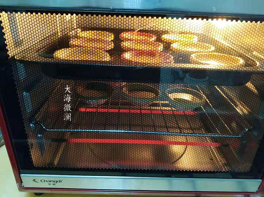 6、烤箱210度预热7分钟,放入烤箱中层烤18-20分钟;