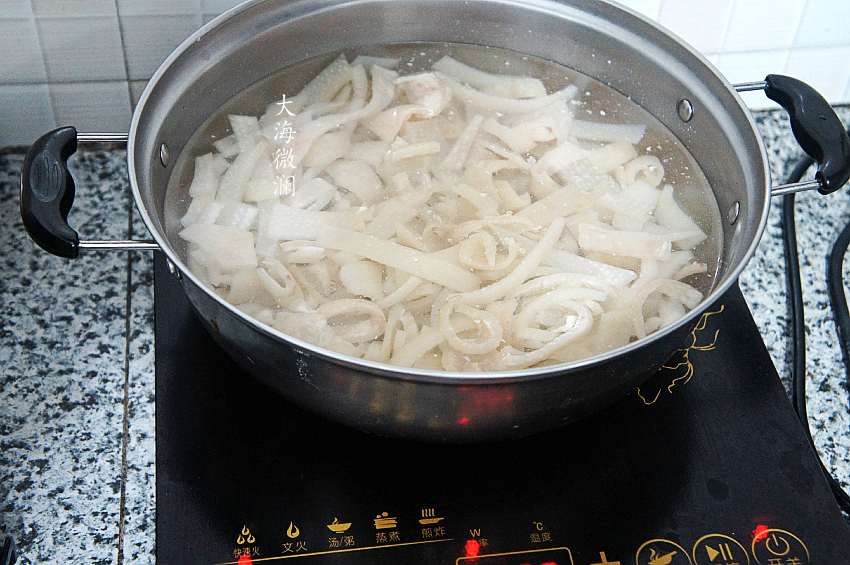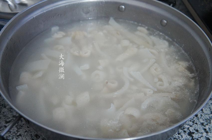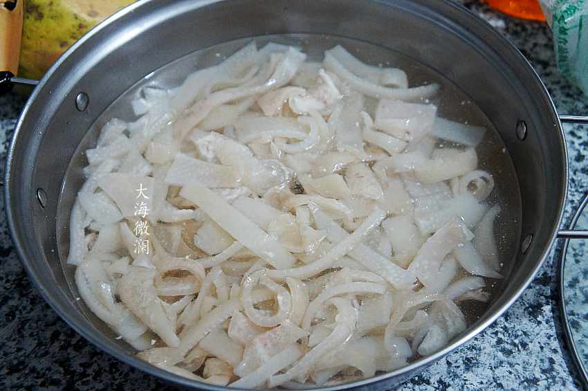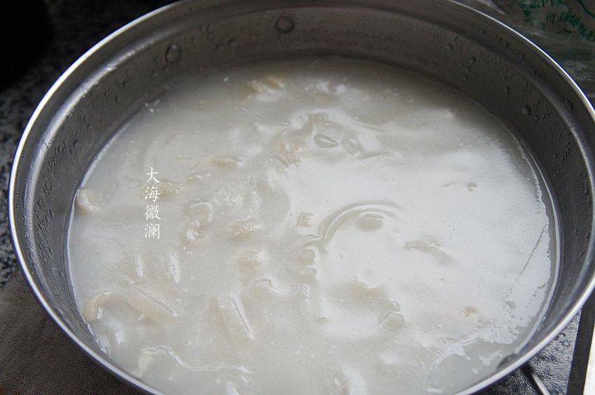 3、再开水烫一遍,去掉浮油,然后加入适量的清水;
