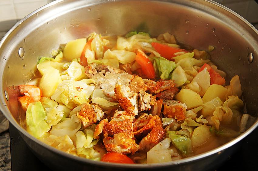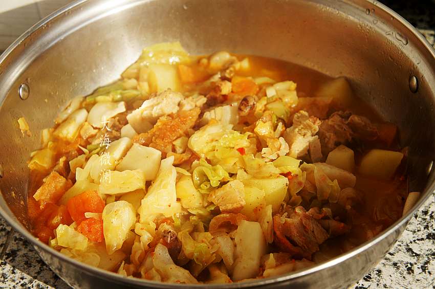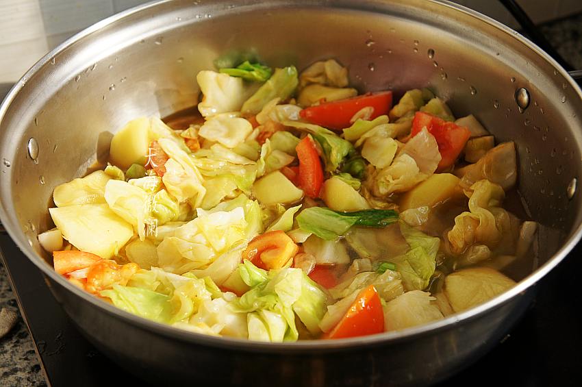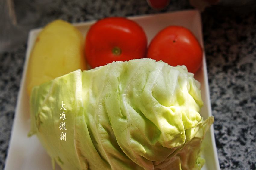 苏伯汤是哈尔滨俄式西餐厅中最普通的一道汤菜,酸甜中有咸,味厚色浓,开胃下饭,营养健康。小编今天分享的这道菜,是在苏伯汤的基础上,多加了一些蔬菜,偏菜少汤,而且没用牛肉,换成了少许香猪肉,当然要想作为减肥餐,就不要放肉肉了。食材都是普通的大众菜,新鲜的卷心菜、土豆、西红柿,搭配香猪肉煮制而成。看似最普通的家常菜,但是营养价值很高,卷心菜中含有丰富的维生素C、维生素E以及β-胡萝卜素等人体所需的元素,一份卷心菜的维生素含量远比一份西红柿的含量要高出3倍,因此常食有利于人体抗氧化和抗衰老,提高免疫力。土豆被称为“十全十美的食物”,属于碱性食物,吃了之后可以在肠道中停留更长时间,因为含有丰富的膳食纤维可以起到通便排毒和清肠刮油的作用。番茄有菜中之果的美誉,肉嫩多汁,可生食也可熟食,生食补充维生素C,熟吃补充抗氧化剂。含有丰富的维生素、矿物质、碳水化