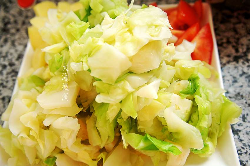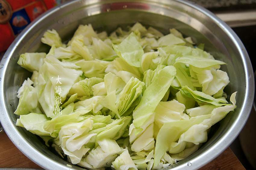 4、焯过水的卷心菜过冷水后攥掉水分;