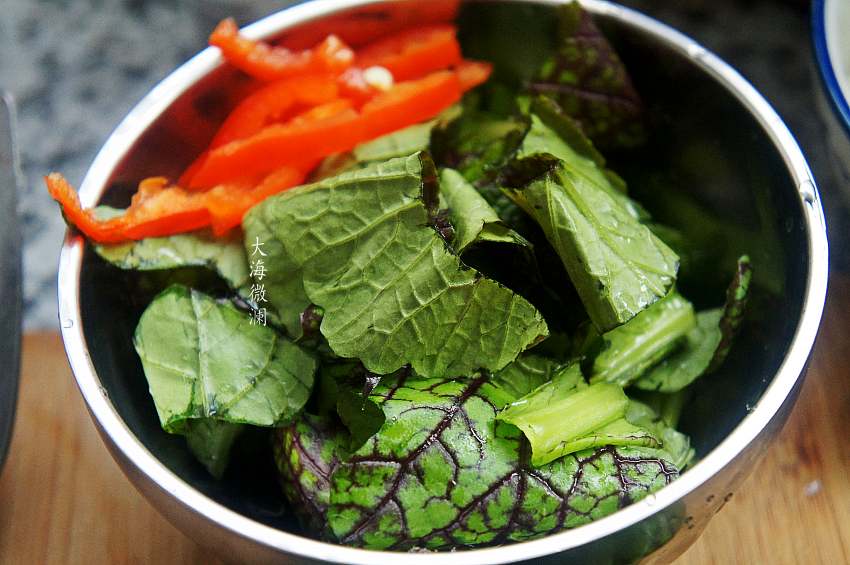 5、出锅前加入盖菜