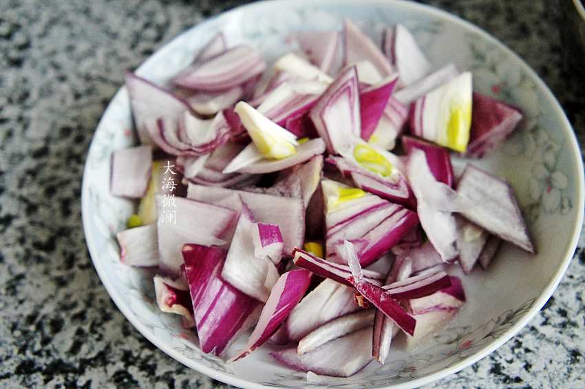 做法:1、洋葱去皮洗净,切块,洋葱最好选紫皮洋葱;
