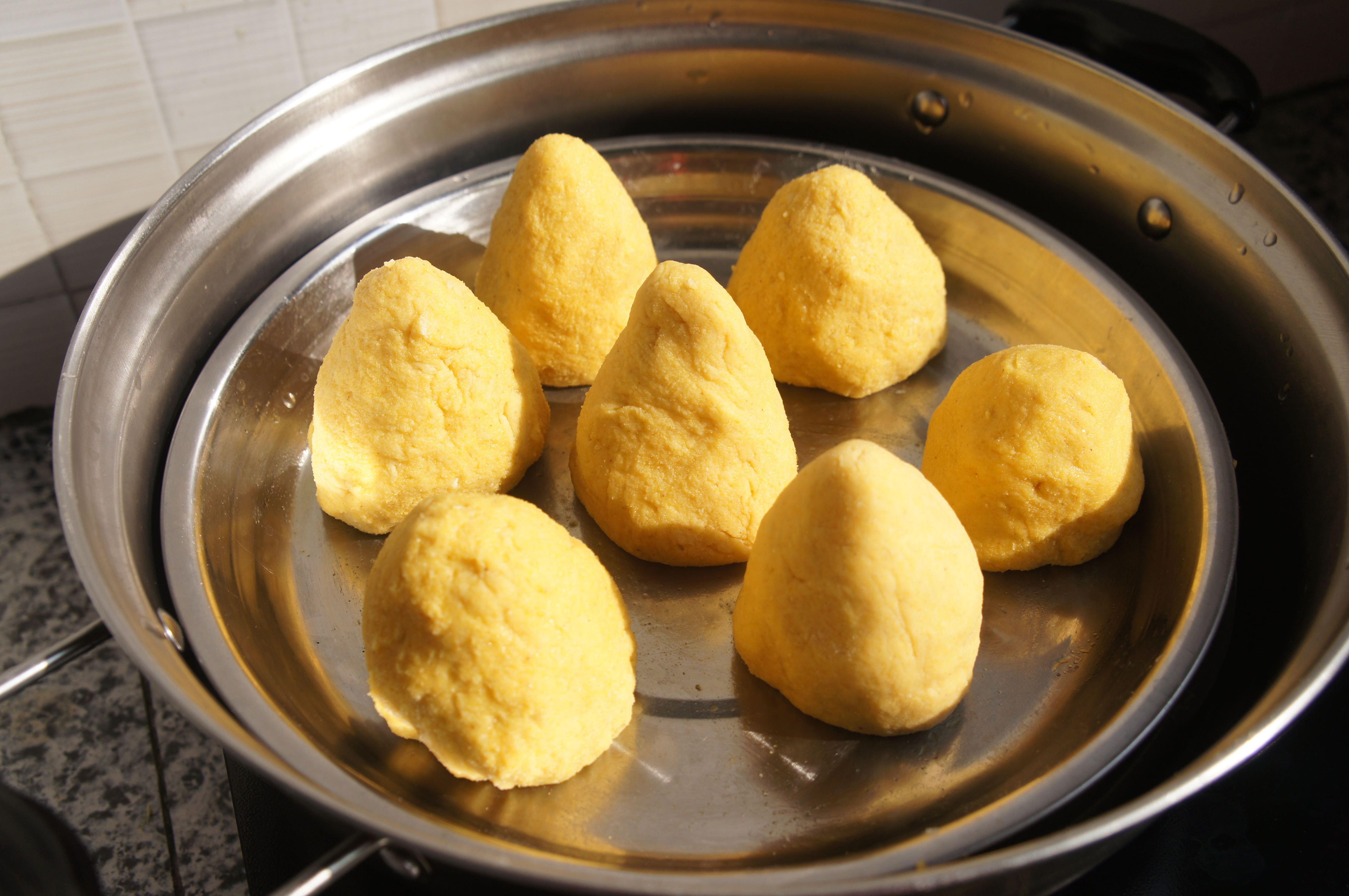 今天是在巴马这边做窝头,没有合适的厨房用具,一样挡不住美味的诱惑。玉米面是粗粮中的保健佳品,营养价值很高,主要成分是蛋白质、脂肪、维生素E、钾、锰、镁、硒、及丰富的胡萝卜素、B族维生素、钙、铁、铜、锌等多种维生素及矿物元素。玉米面怎么做都好吃,比如玉米面糊,玉米面条,玉米面饼、玉米面豆包或者玉米面窝头,常吃对人体的健康非常有利。各种吃法,我家人特别喜欢玉米面小窝头,做法非常简单,烫面一蒸就OK了,关键的一步是和面时要加点小苏打,千万别忘记,否则你做出来的玉米面窝头就是硬邦邦的不好吃。
