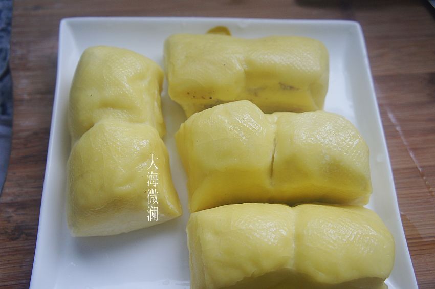 6、出锅装盘,蘸白糖吃香甜软糯,太好吃了,东北人吃不够的粘豆包。