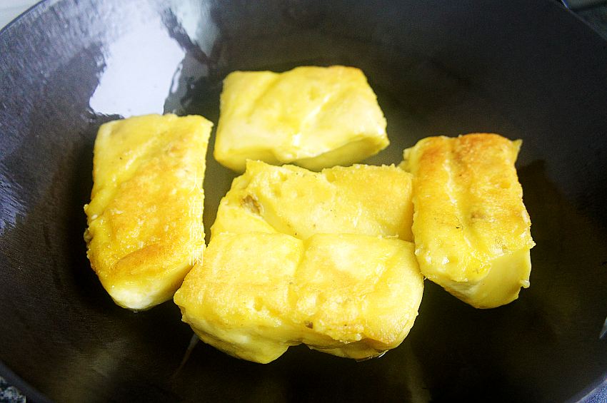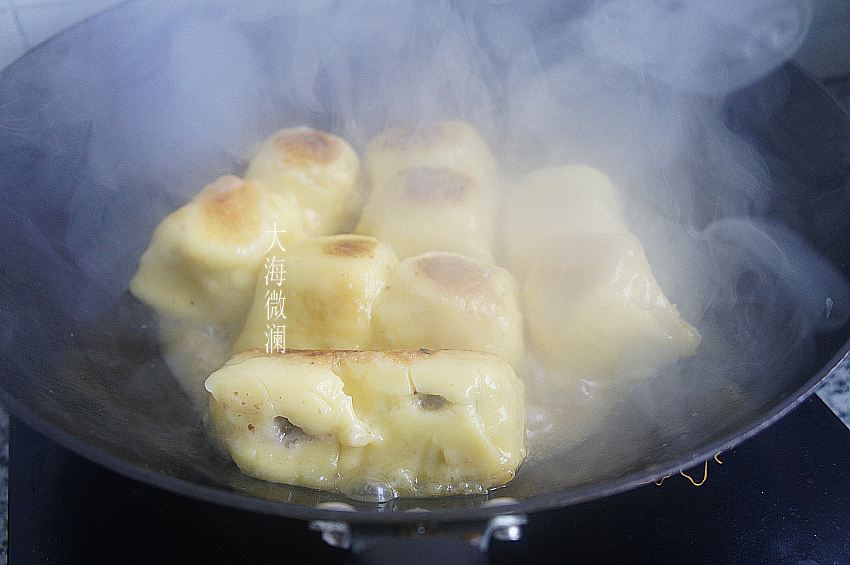 1、这种煎法注意一个小技巧,加水后一定要盖上锅盖焖,豆包才能煎透,口感才黏糯,否则煎不透就不好吃了。