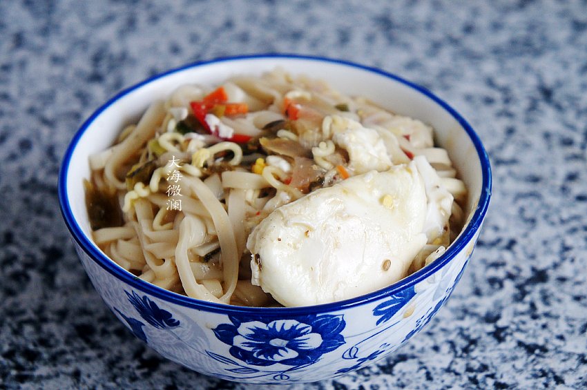 懒人版的快手早餐,两种面搭配荷包蛋,没想到孩子吃了一大碗