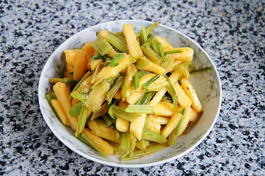 【木瓜炒芹菜】所需食材:木瓜400g;芹菜适量;油适量;盐适量;蒜适量;糖适量;生抽少许。