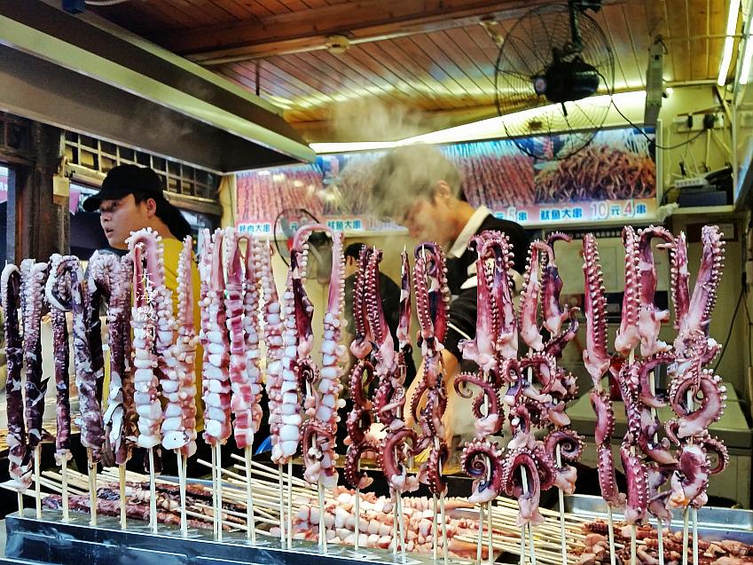 这鱿鱼大串是不是看着就有食欲,物美价廉,10元4串,柜台前人头攒动,拥挤不堪,高高举起手机,拍一张就蒜是解馋了。