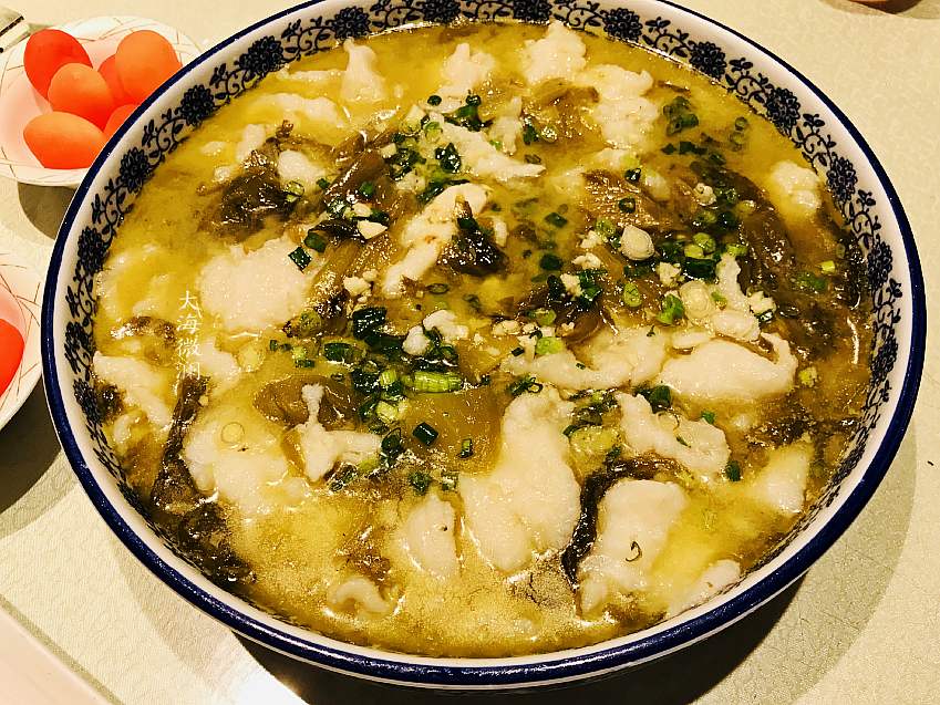 【可以喝汤的酸菜鱼】听这名字就有食欲,看这一大碗酸菜鱼,不自觉的口水横流,听说重庆人除了火锅,还爱吃鱼,这酸菜鱼做的地道,味道纯正,咸淡适口,鱼肉细嫩,入口即化的感觉,喝一口汤,酸溜溜的味道极其的鲜美,这可是一道最受欢迎的菜,当真是汤汁都没剩。