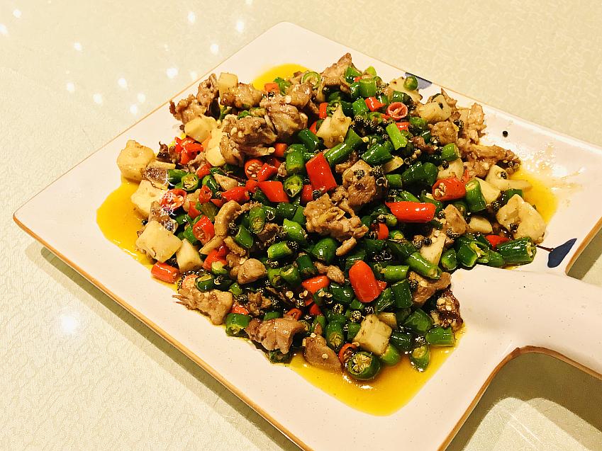 【铁山坪花椒鸡】这道菜也是重庆名菜,老同学之前来过重庆,吃过铁山坪花椒鸡,风味独特,感觉超赞,特意点给我们品尝,怎奈这道花椒鸡实在是太辣了,二分之一的人只是尝尝,鸡肉真心入味,辣到不能吃辣的人无法承受的程度,总之这道菜是超级超级的下饭菜。