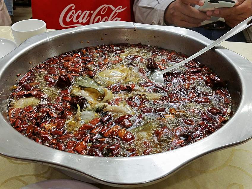 【满盆香】这一大盆端上来,油在翻滚,香飘四溢,椒香浓郁,那叫一个香,只闻这味道就很满足啦,不愧为满盆香。这道满盆香点的是鲶鱼,肉质细嫩,味道鲜美,尽管飘着一层的辣椒,真心话香而不太辣,吃的过瘾,开胃又下饭。