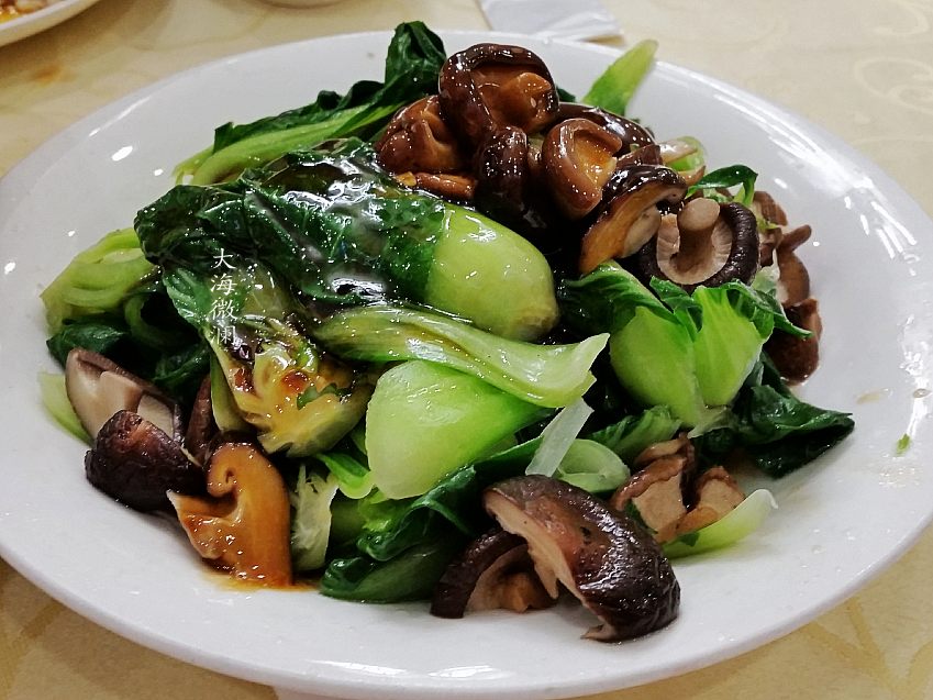 【香菇油菜】这是最受大众喜爱的一道菜,大概不是店家的特色菜,感觉这道菜做的不够入味,和前边两道菜相比,就像不是出自一个饭店一样,差异蛮大的,不过我们还有很创意的吃法,把油菜和香菇放到馋嘴蛙的汤汁中一蘸,那味道立马不一样了,蛮好吃的,要是给大厨打分的话,这道菜真心不及格。