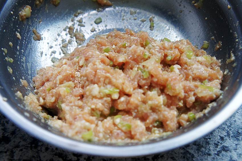 2、肉丸的调味料随个人喜欢的口味添加,我没加油,所以不油腻,而且猪肉本身就有油,喜欢的也可以加一些油调味。