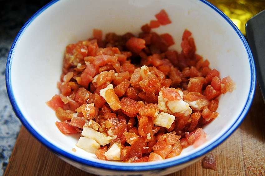 4、猪肉洗净切丁,加入料酒、生抽、少许淀粉腌制10分钟左右;