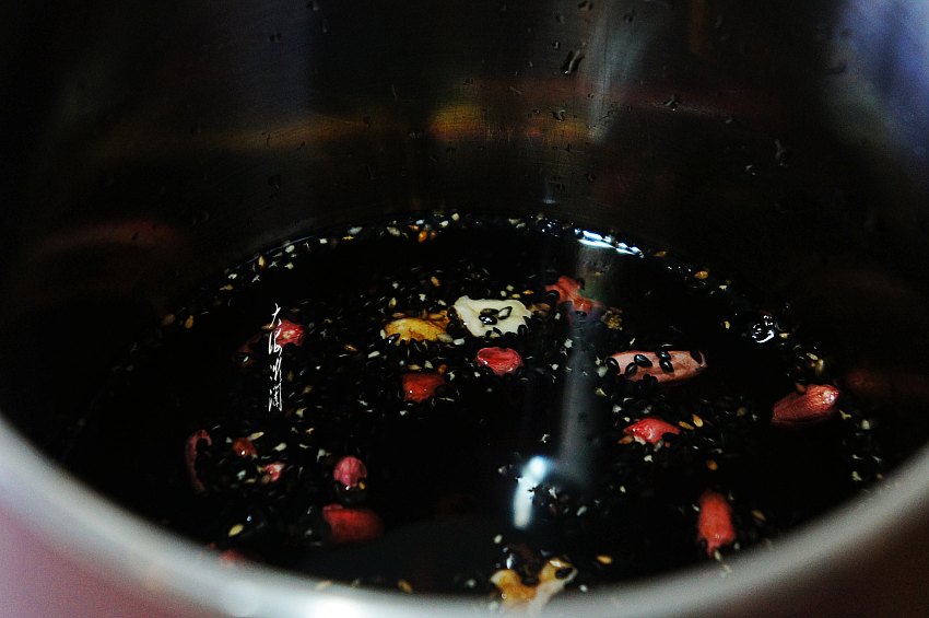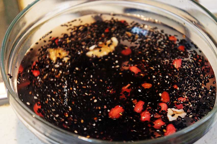 按说这食材是免洗的,可是个人还是不放心,投洗了一遍,最好用纱布过滤,否则会损失黑芝麻的。