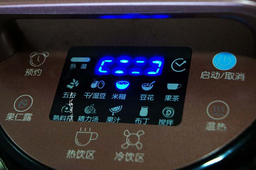 选择热饮区,米糊功能,启动电源;