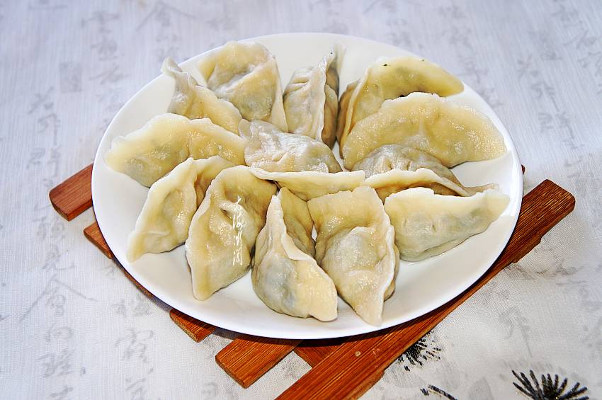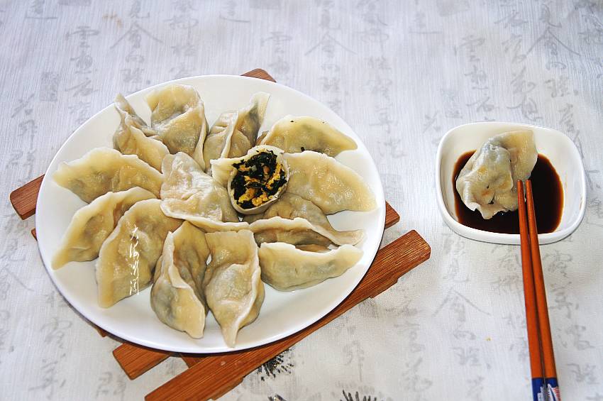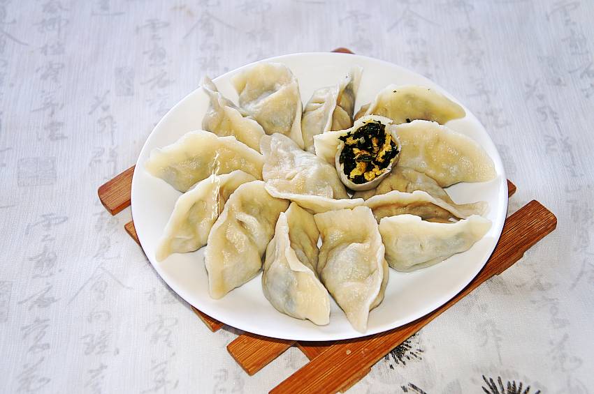 8、出锅装盘,非常美味的蒲公英鸡蛋馅水饺,好吃不腻,清香爽口,每次都要多包点,全家人都爱吃。