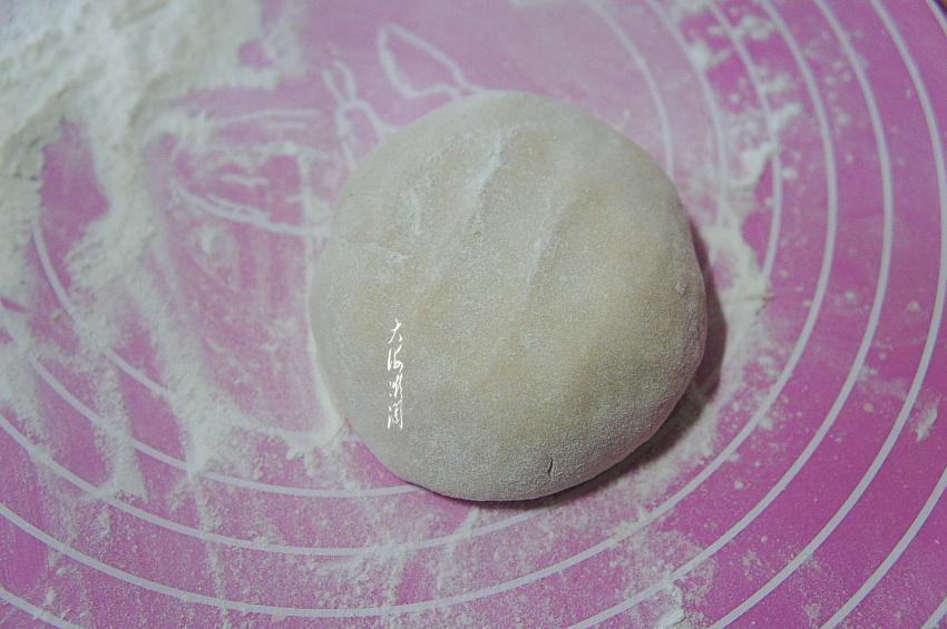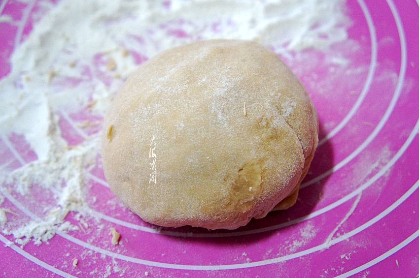 3、很关键的小技巧就是要按比例加小苏打综合面团,而且一定要揉匀,否则会出现黄色的碱点,影响视觉和食欲。