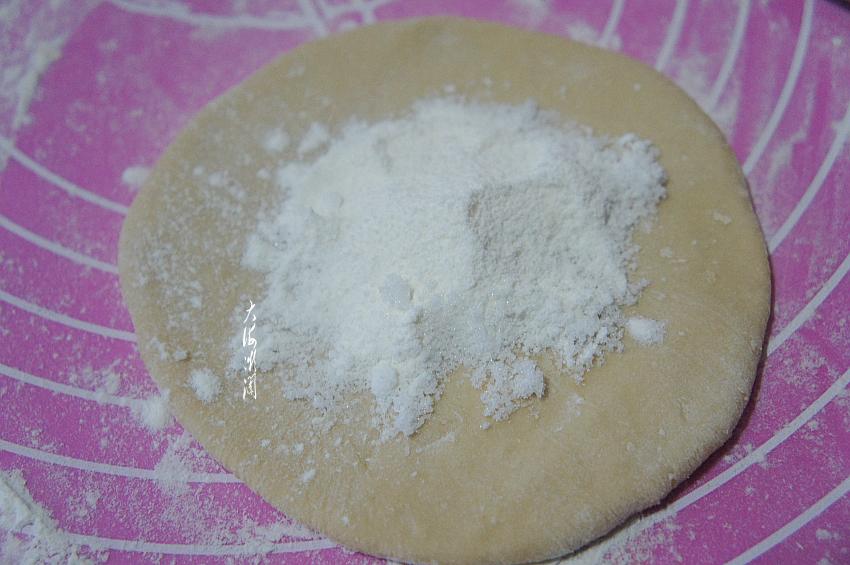 4、包白糖时,在白糖中兑点面粉,避免烙饼时白糖流淌出来。
