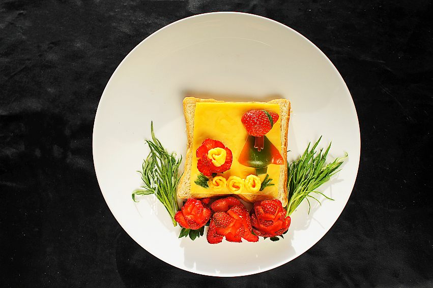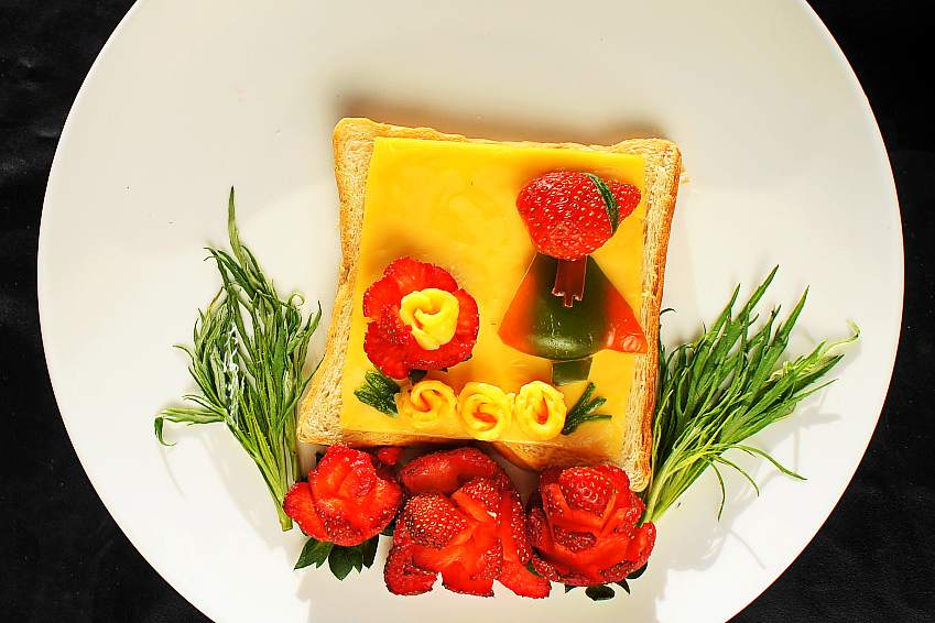 时间真快,转眼就到六一了,这一年将近一半的时间飞走了,家里来个小客人,她妈妈有事要出门,拜托我临时充当保姆,家里也没有什么好招待的,水果面包一起上,想吃啥自己选,临时做个简单的三明治,修修剪剪弄个小萌娃一起凑热闹,一杯草莓汁刚榨好,一转身小朋友的三明治全吃光了,好可爱的小朋友,不挑食。