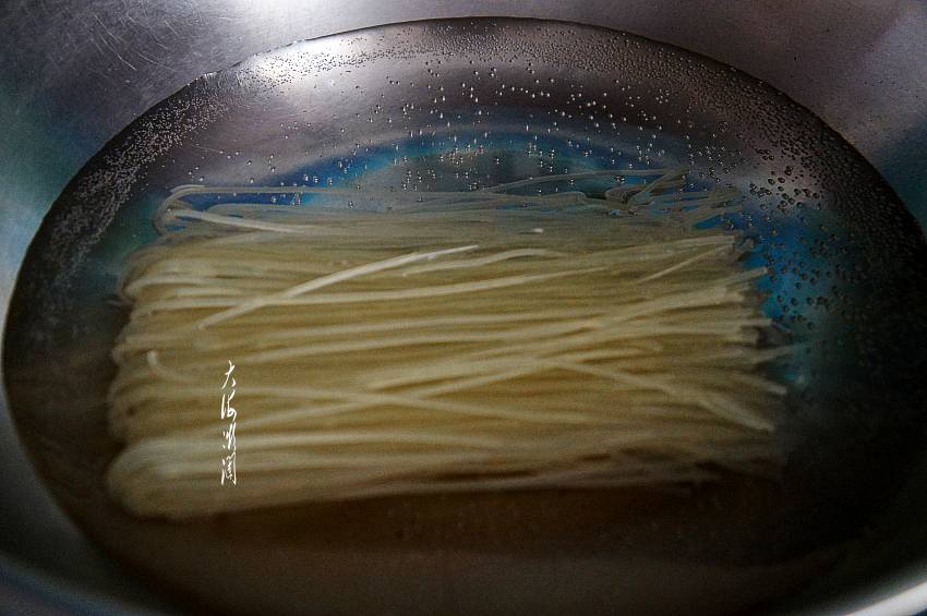 4、锅中加入适量的水,下入米粉烧开,再煮10到13分钟。