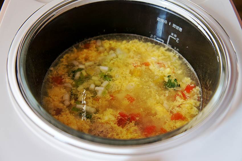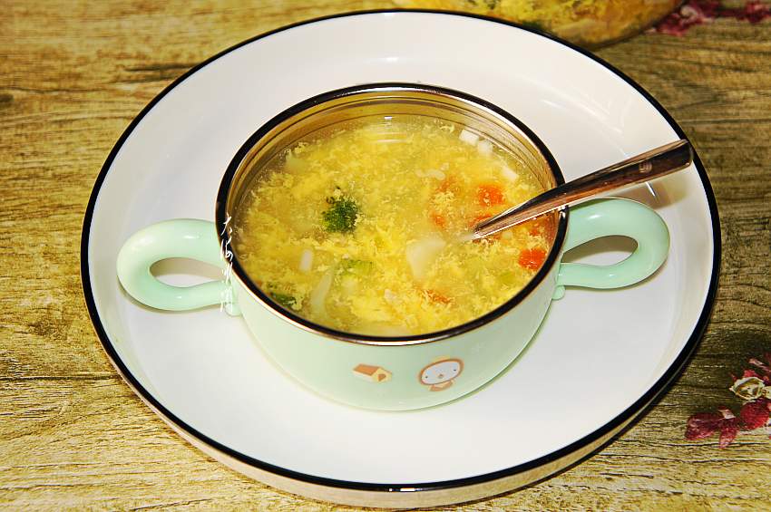 8、番茄豆腐蛋花汤端上餐桌,老人孩子都爱吃。