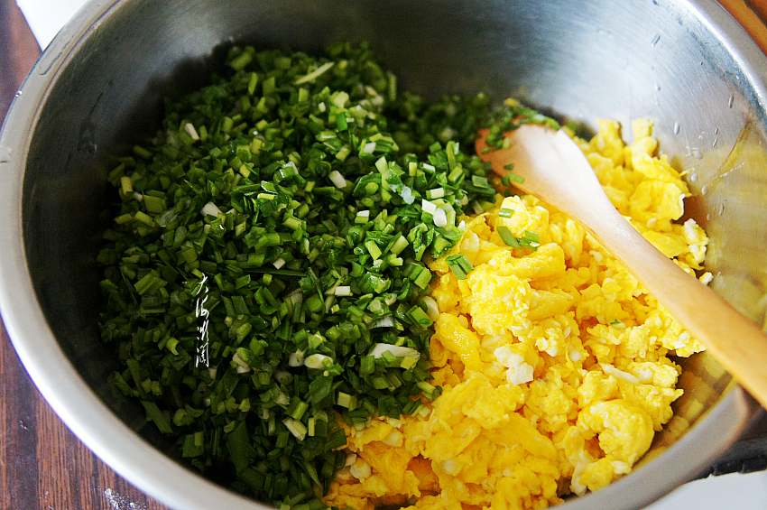【野韭菜鸡蛋馅水饺】所需食材:高筋粉400g;鸡蛋4个;野韭菜200g;油适量;盐适量;蘑菇粉适量;胡椒粉适量;蚝油适量。