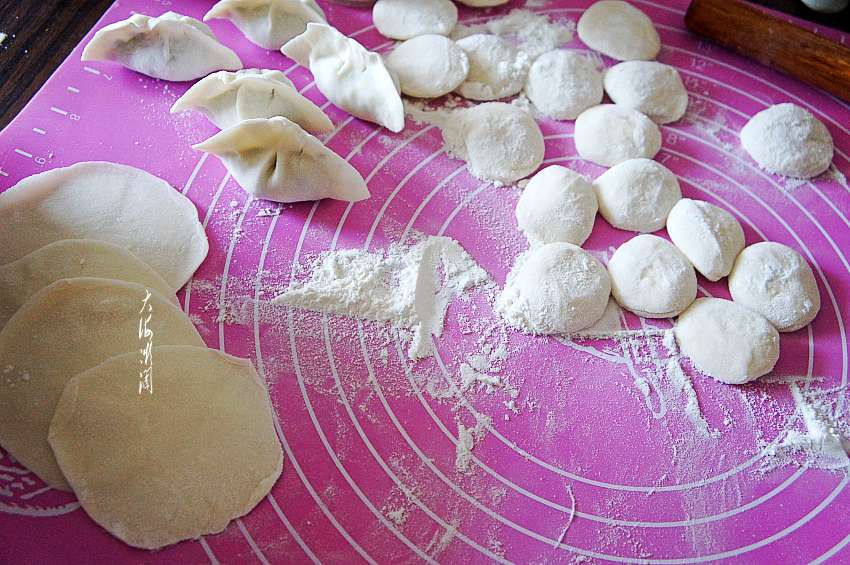 8、包饺子,将面团揪成均匀的小面剂子,擀成饼,包上馅,两手对捏就好了,最简单的包法,人人都会。