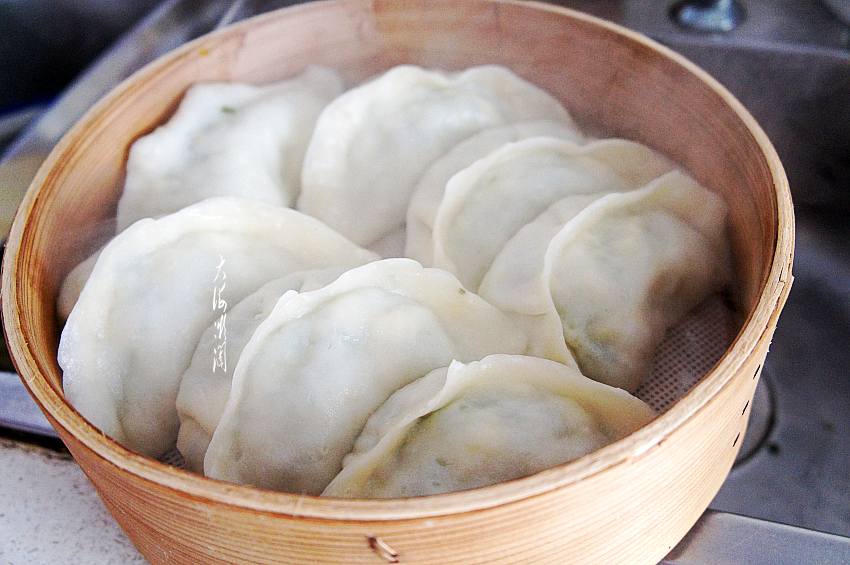 12、味道鲜美的大蒸饺出锅装盘。