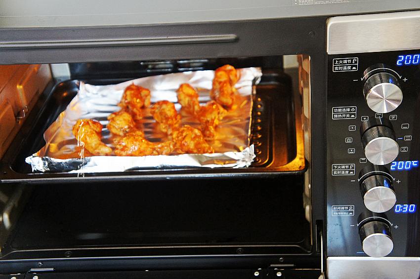 5、烤箱上下火,200度预热后,设置烤30分钟,中间可以取出来再刷一遍烧烤酱,让烧烤的味道更浓郁。