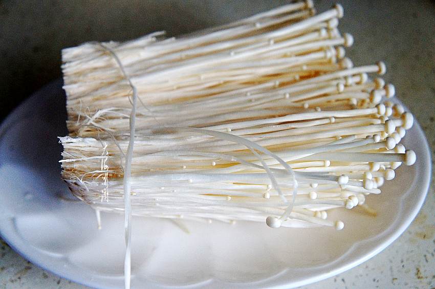 2、清理好的金针菇淡盐水中浸泡10分钟左右,能起到杀菌作用。金针菇在生长期是不用农药、化肥的,所以金针菇不仅安全,而且更加健康。但是生长及运输途中难免有灰尘和细菌,还是要好好清洗干净。