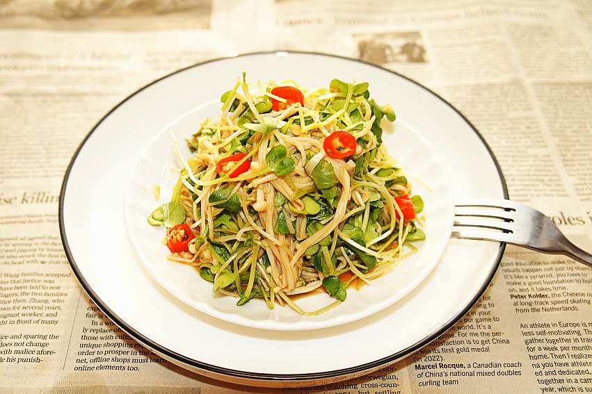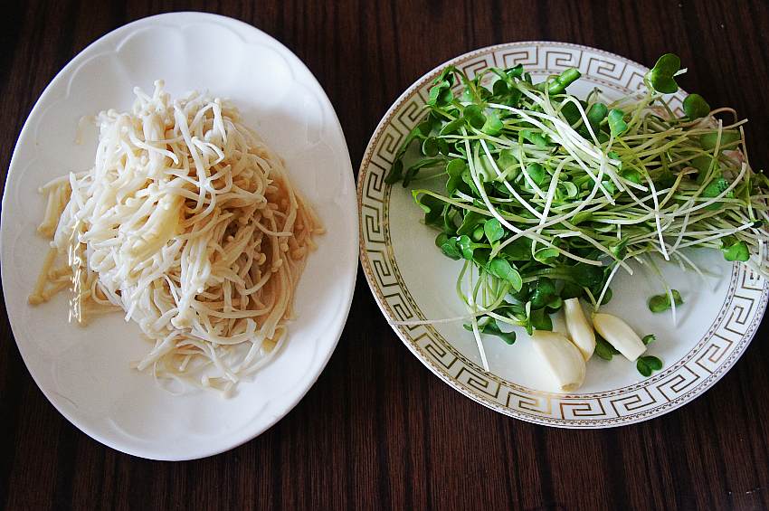 昨天收到一份非常特别的礼物,是好朋友送来的绿植,并嘱咐我要尽快把它吃掉,面对这细嫩的小植物一下子就想到了金针菇,这两种食材是绝配,一脆嫩一嫩滑,一绿一白,不但外观养眼,二者都是低热量高膳食纤维,不但清热去火还刮油,常吃这菜老人孩子健脑益智,女人定能吃出小蛮腰。