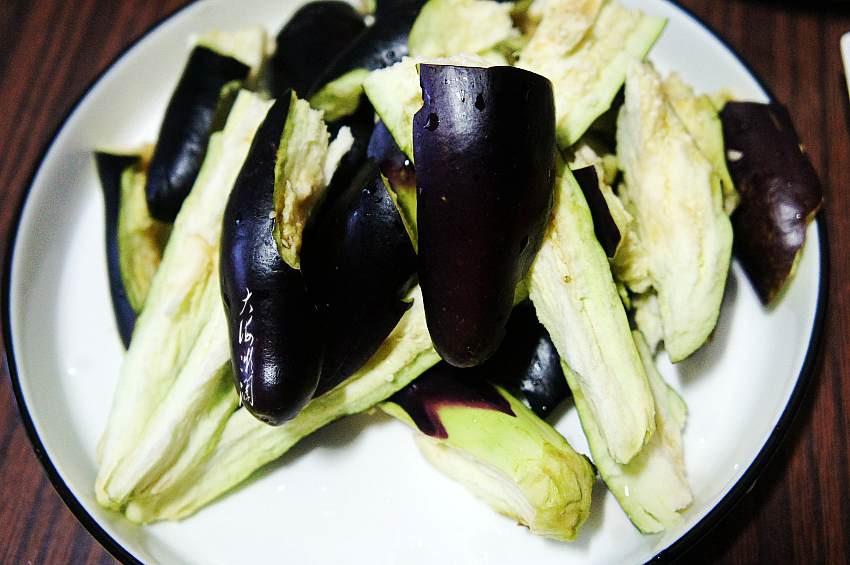 3、茄子用手撕成条快,这样炖了入味又好吃