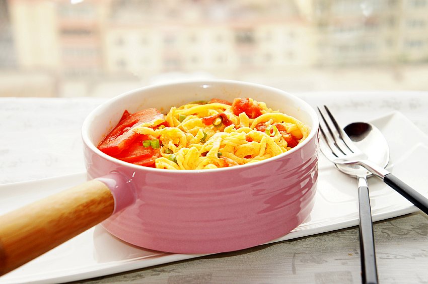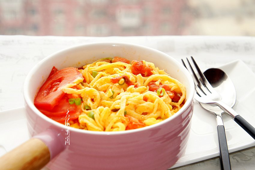看这面就特别有食欲吧,曾经火爆网络的番茄鸡蛋面,飘香四季的家常面,既不是手擀面也不是挂面,而是挤出来的鸡蛋面,做法超级简单,百分百的零失败,分分钟就能搞定的快手早餐,口感滑嫩,味道鲜美,我家小朋友时常点餐。鸡蛋与番茄的搭配,满满的正能量,尤其适合老人和孩子。它虽然没有手擀面劲道,确有着手擀面所不及的滑嫩,充满鸡蛋的香味,一根面走到头,简单到不能再简单,做起来蛮有意思,吃起来酸甜爽口,老人孩子都喜欢。饭菜一锅出,汤汤水水营养价值极高,春季吃它健胃消食,生津止渴。夏季吃它美白肌肤,抗衰老。秋天吃它进补又防燥。冬天它能保护心血管,减缓心血管疾病的发展。这是一道最富营养,最物美价廉的家常面,喜欢的朋友一起做起来吧。