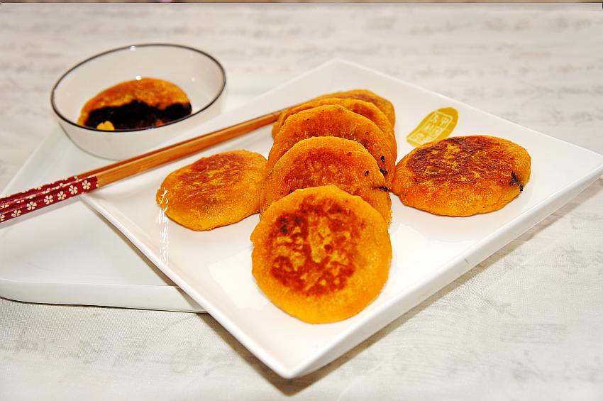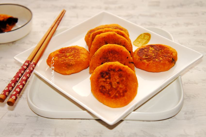 9、出锅装盘,香甜软糯的红薯饼端上桌,也是瞬间秒光的节奏。