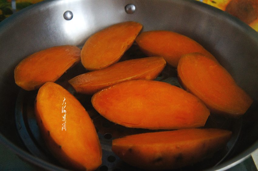 做法及步骤:1、红薯洗净,不用去皮,蒸熟了再去皮一点也不浪费。
