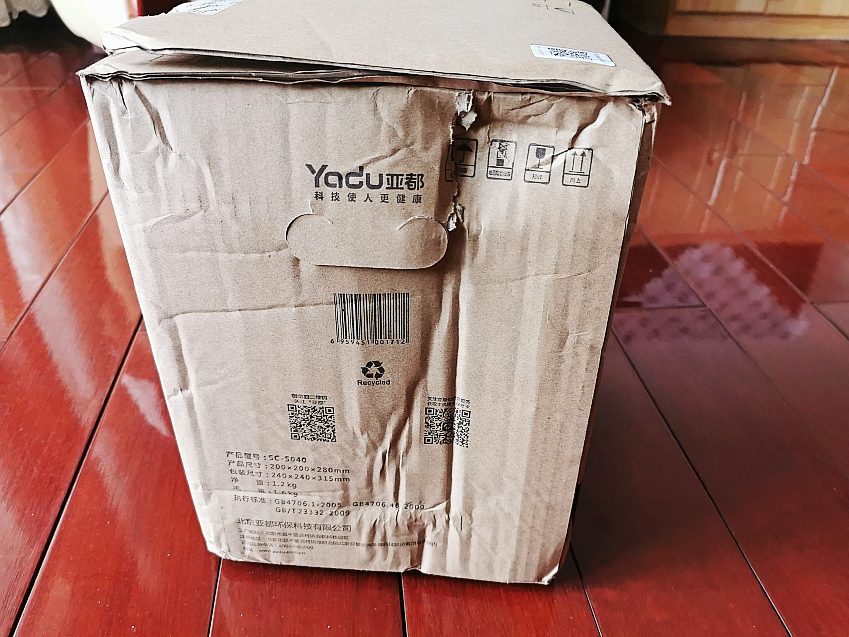 外观部分:亚都超声波加湿器(SC-S040)的包装体积不大,重量很轻,外包装虽然已坏,庆幸加湿器无恙。