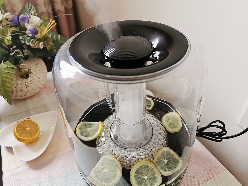 实测部分:首先对加湿器的各部件进行内部清洁,然后恢复原位注水开工。准备一个柠檬洗净切片。