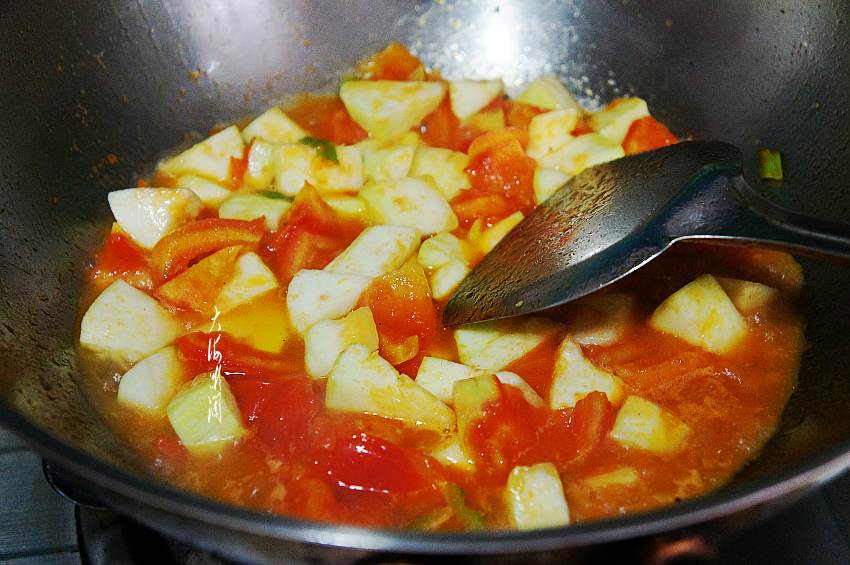 1、做这道菜的关键是西红柿一定要炒出浓厚的汤汁,再下入角瓜,味道超级鲜美。