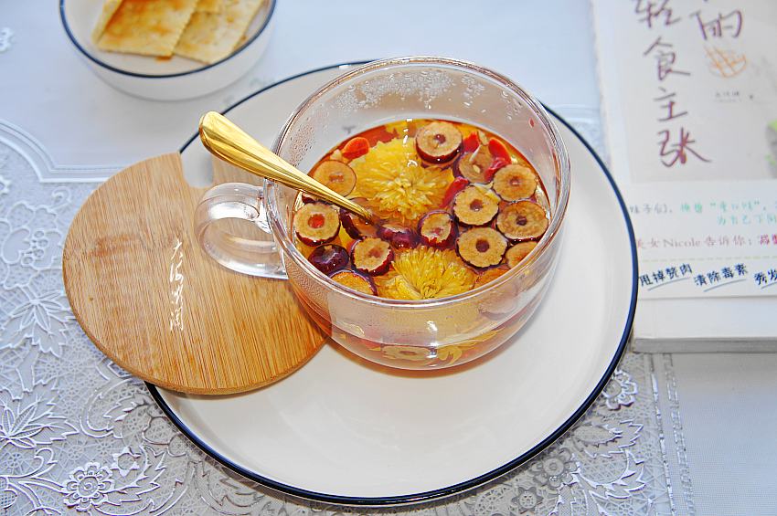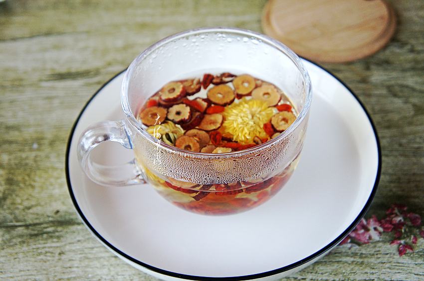 2、菊花红枣枸杞茶虽然能经常喝,但是不能大量喝,不建议天天喝,根据自身情况最好隔天喝。