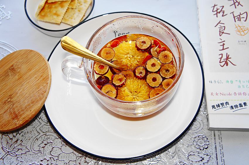 1、我这种泡茶方式是懒人做法,讲究喝茶的朋友可以将红枣和枸杞子冲洗干净,放入养生壶中加水大火煮沸,转小火炖煮10分钟,再将菊花放入,大火煮沸后熄火五分钟,加入适量冰糖调味即可。